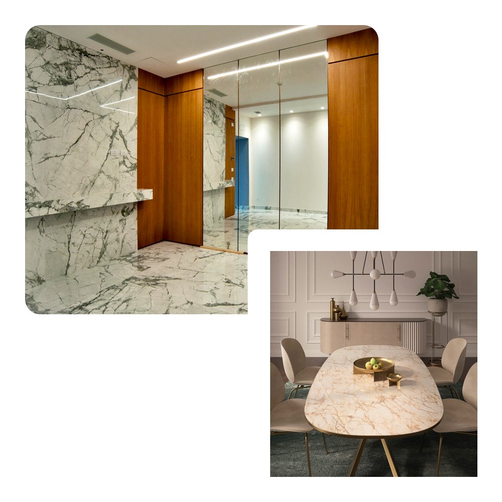 Le lastre Laminam possono essere impiegate per pareti e pavimenti interni, per realizzare mobili e complementi d’arredo, ma anche per facciate e rivestimenti esterni.